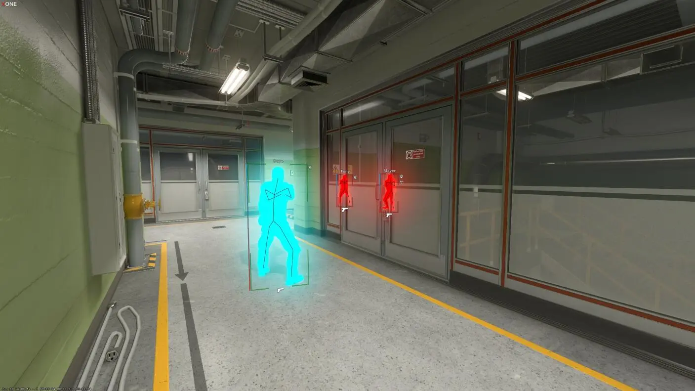 2. Wallhack(透视):激活透视后,可以透过墙看到敌人。 显示关于敌人的信息:健康状态、武器、弹药数量。